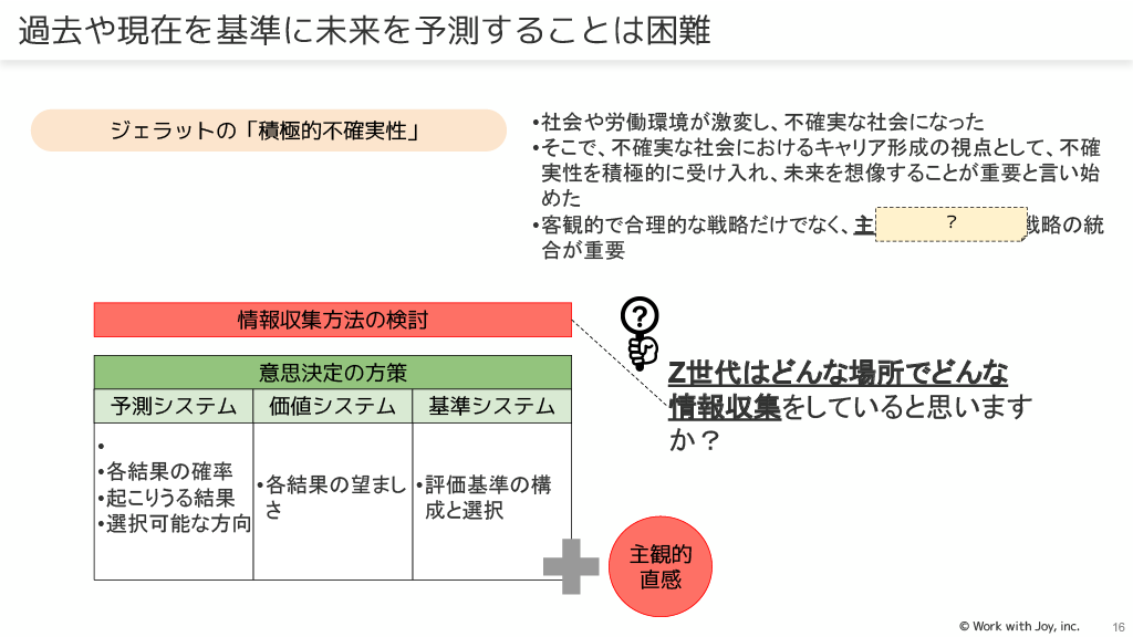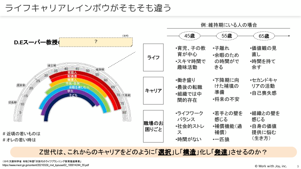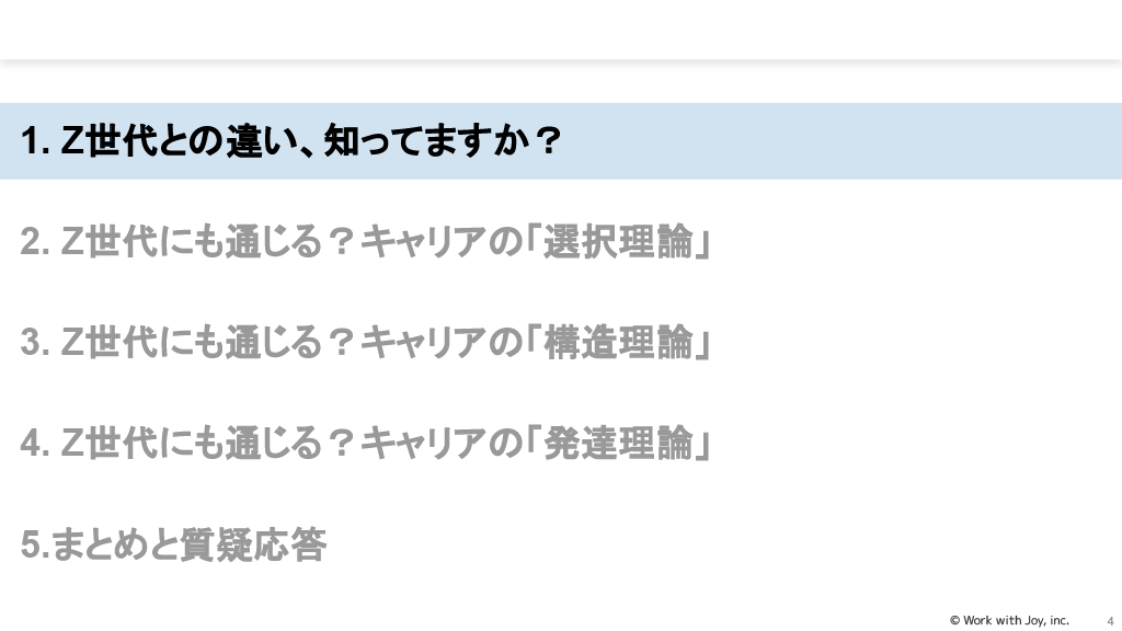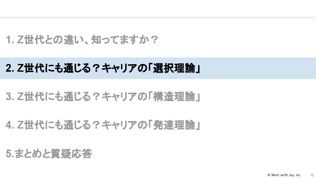キャリアの「構造理論」(心理学的構造理論、社会学的構造理論)では、Z世代がどこに重点を置いているかを知ることが必要です。