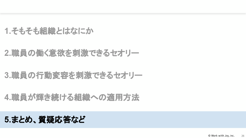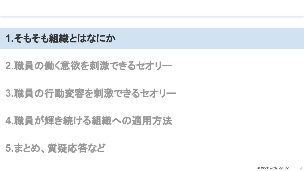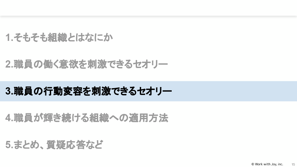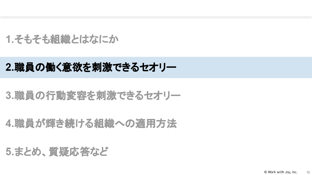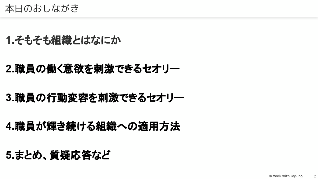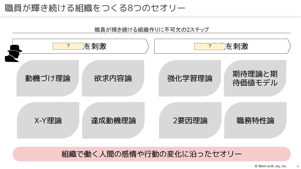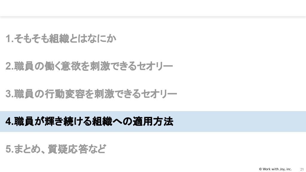 本資料は、「職員が輝き続ける組織をつくる8つのセオリー」が紹介されています。