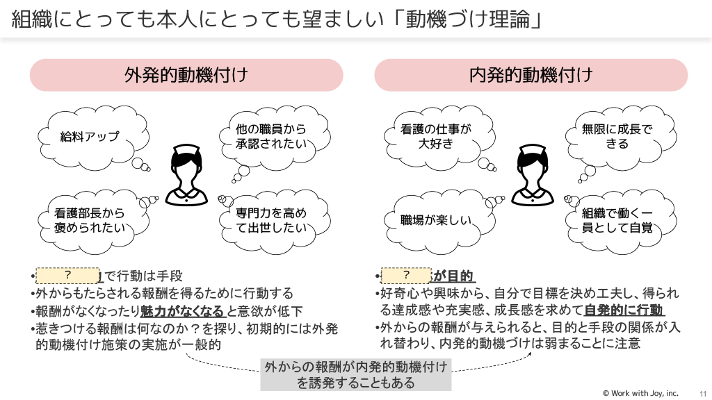 動機づけ理論:外発的動機付けと内発的動機付け。